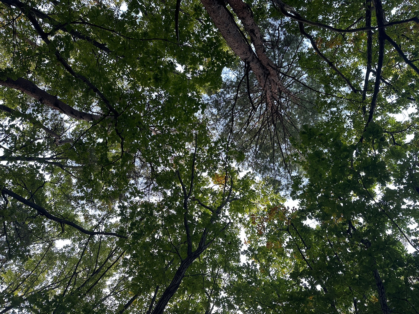 걸으면서 위를 올려다보니 커다란 나무들이 하늘을 덮고 있었다.